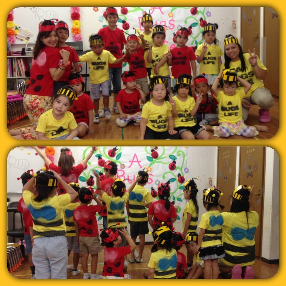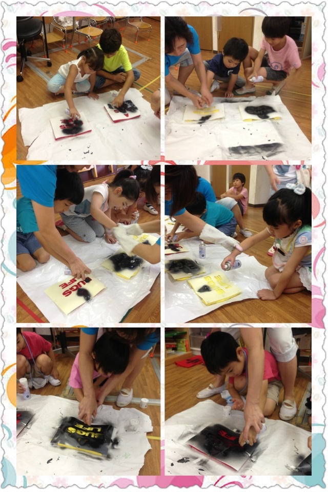 Another busy day in the Bugs world as each one spray-painted their t-shirts with ladybugs and bumble bees as their pattern....