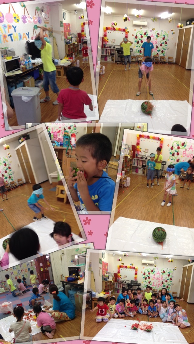 We also played where each one had their turn in hitting the watermelon until it breaks open...and had it for our dessert after finishing lunch...it was really sweet and yummy that the children couldn't stop themselves from having seconds...