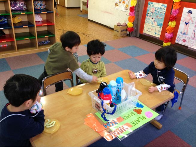 In pre-school,children are taught to be independent. That's why in Apple Class, we begin by teaching the children to do things by themselves,like getting their lunches from their bags and preparing it at lunch time. We also teach them how to help out during snacks. Each of them take turns everyday in helping and everyone is looking forward on what they will do to help....