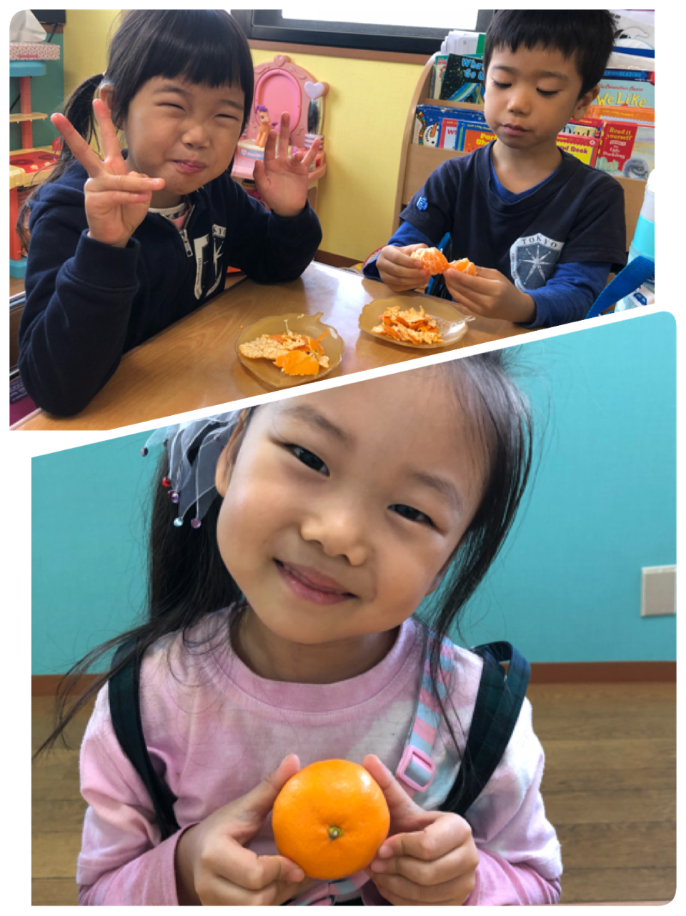 To beat the cold, in the Melon Class, we had delicious tangerines for snacks. Kids always enjoy eating fruits together.