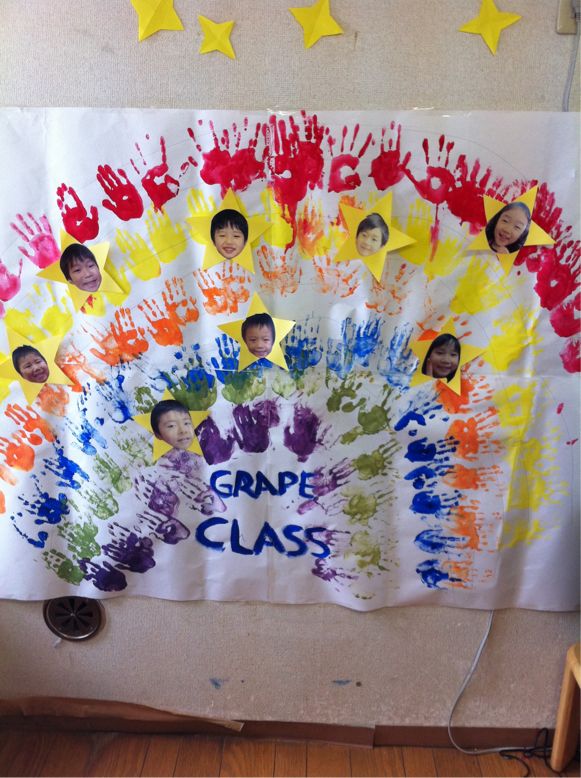 It's the right time to study about "Rainbow" Why the rainbow comes out and what are the colors in the rainbow. We made artificial rainbow, by using water in a big jar and a mirror. The children enjoyed watching the rainbow on the ceiling in the room. The children also had fun making a rainbow out of the print of their hands.