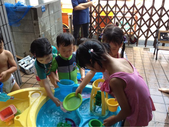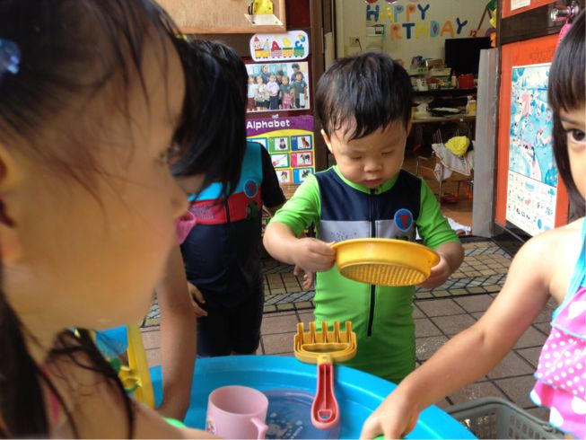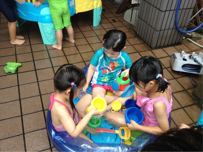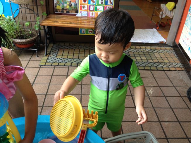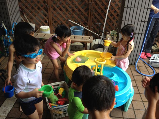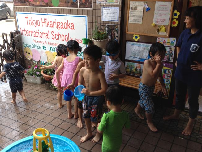 It was too hot to walk under the sun to go to Akatsuka park for a swim so we decided to stay in school and let the children play and paddle with water...it was really fun...