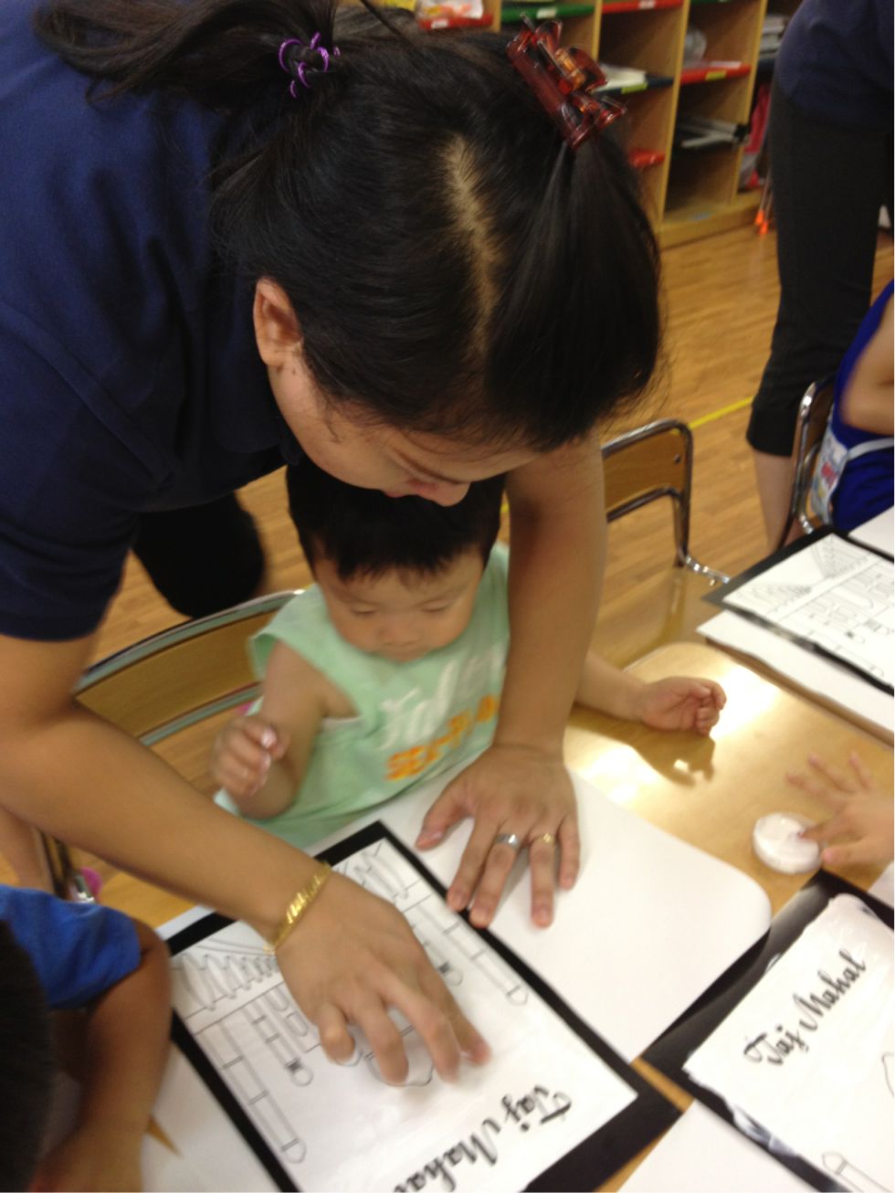 Ms. Melanie also introduced a game that is played in India,that also has a similarity on our game called "duck,duck,goose"...the children are sitting around in a circle with their hands behind them and eyes closed,the child who is holding a towel or hanky will go around and drop the hanky to one of the children in the circle,and whoever got the hanky,will get up and chase the other child until he or she finds a spot to sit on,and the game continues....