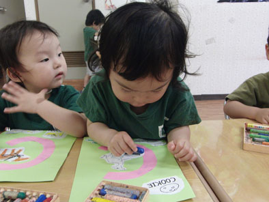 Rainy season was announced in Tokyo this week. We already had few rainy days when we couldn’t go outside. Children spent them reading the books and playing with clay, toys and friends. We also did craft for letter “E”.