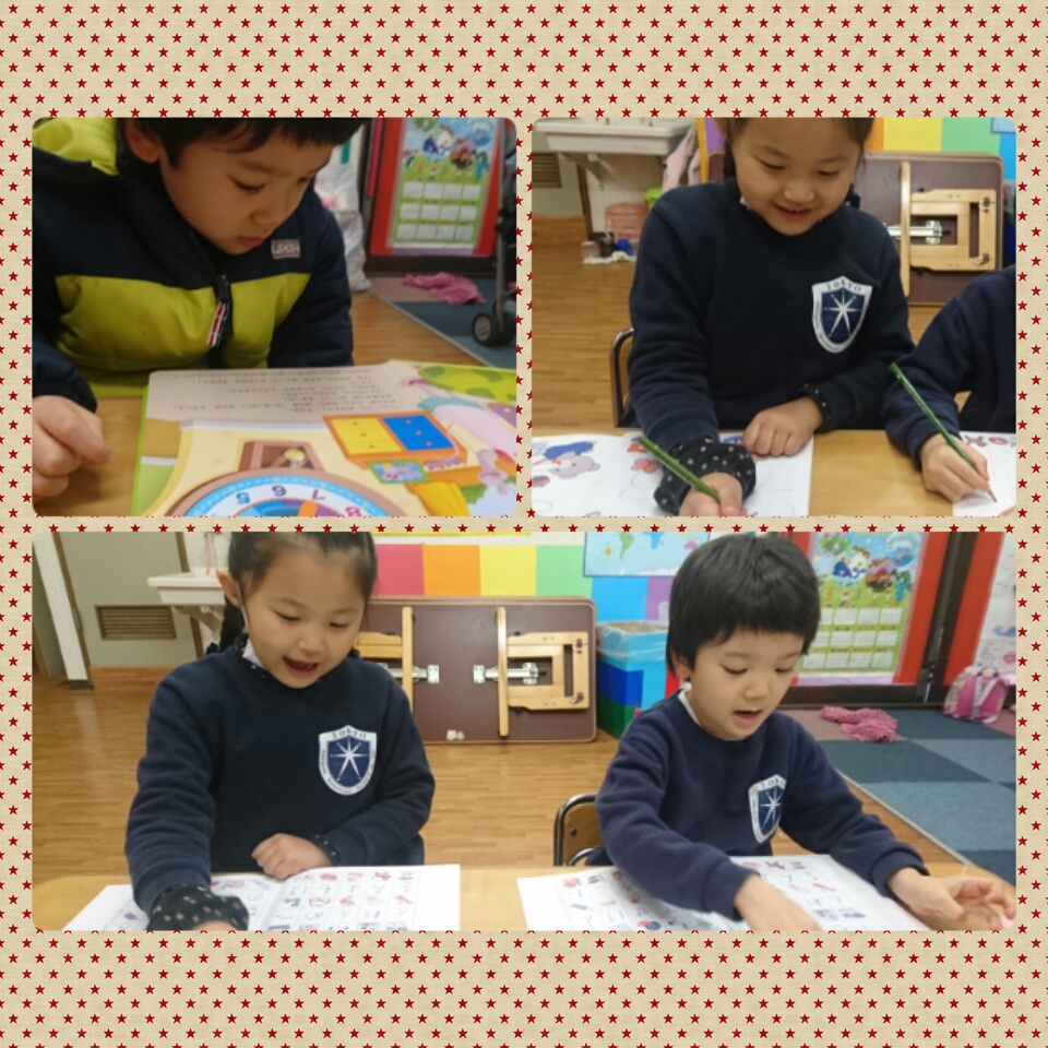 最後の学期は毎年保護者の方へアンケートをするのですが、今年は人数も多いので劇をする年長さん。