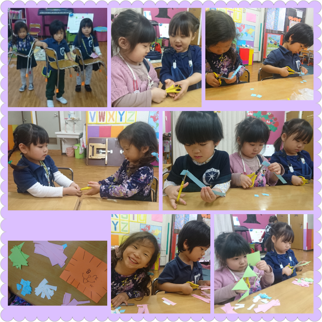 ハサミの受け渡し、使い方、そして切る活動をした6人。上手に切れなかったお友だちが少しずつ切れるようになって、本人以上に嬉しかった私です♪