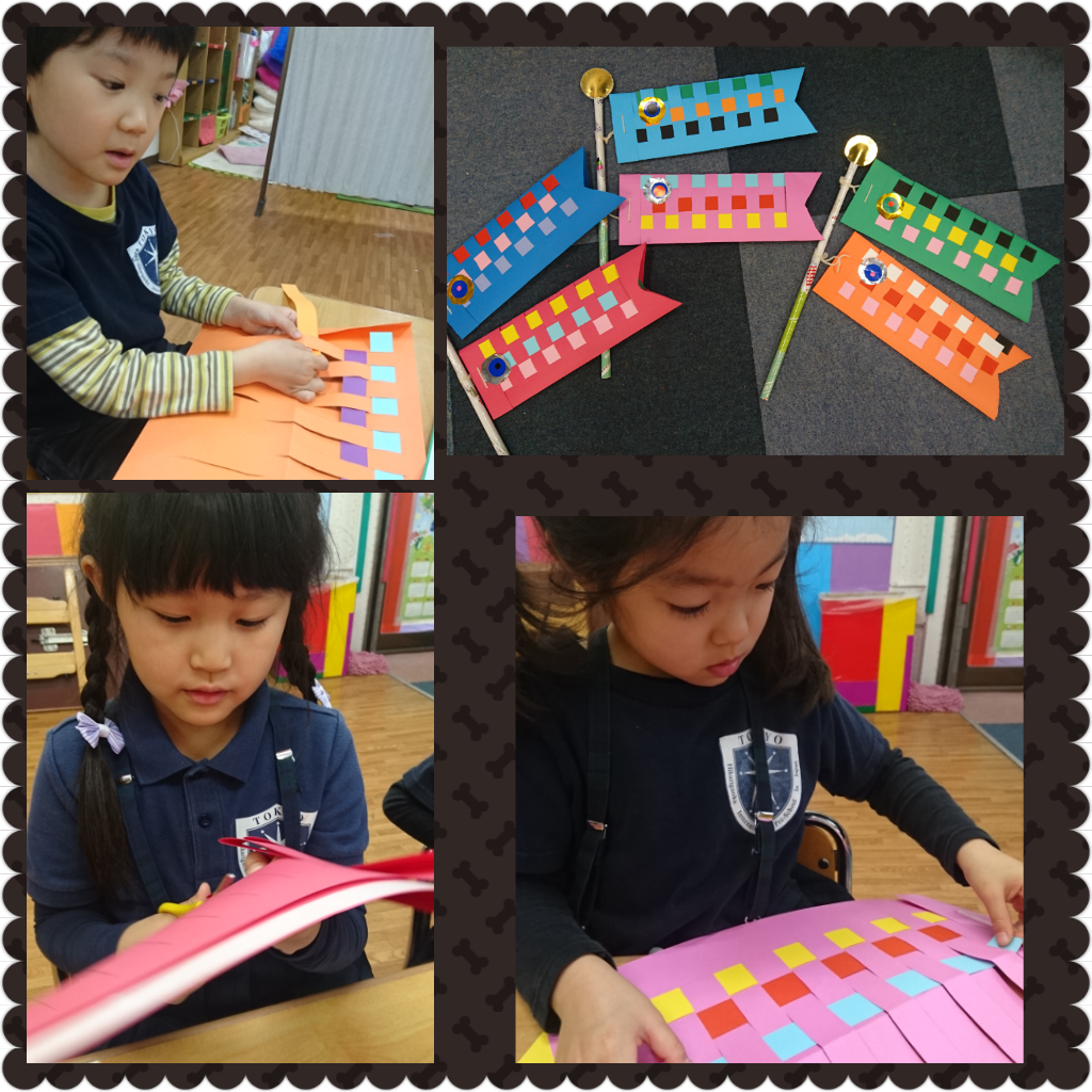 子どもの日の今週は、りとるじゃぱにーずで“こいのぼり製作”を行っています。
