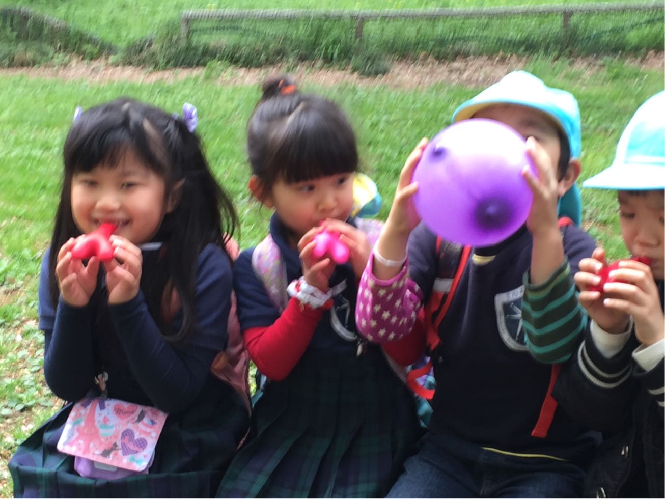 Each of the kids tried to blow their own balloon.