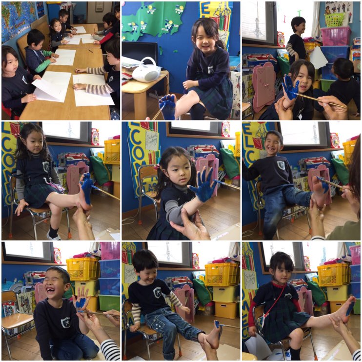 It's only been a week since they came to Grape Class, I've noticed that some of the children were already comfortable. In our lesson for this month the " All About Me " was included. In this lesson they learned their friends' like and dislike. They also painted their feet and hands for footprints and handprints