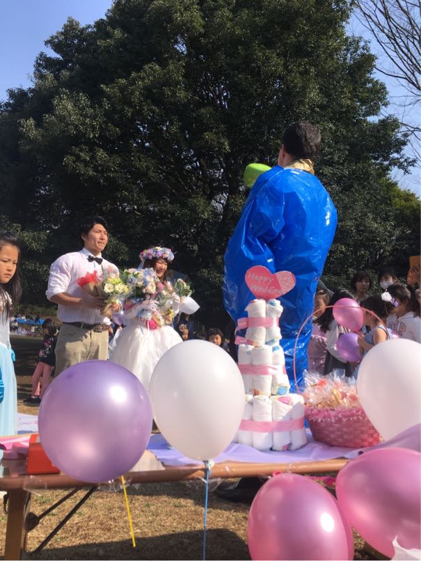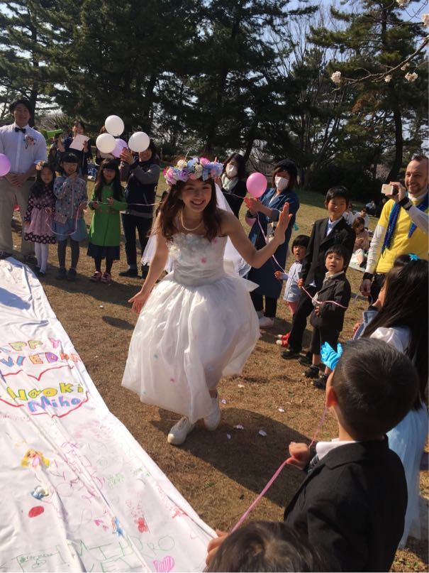 昔から外が大好きな私は、Australia留学中Garden weddingを挙げている夫婦を見て憧れていました。そこから7,8年schoolで働き始め、彼と出会ったある日Ms.Ayakoと「運動が大好きな二人の結婚式は、光が丘でExerciseも込みだろうね」なんて笑って話していたら…Dreams come true!!weddingドレスで、ZUMBAしちゃいました(笑)