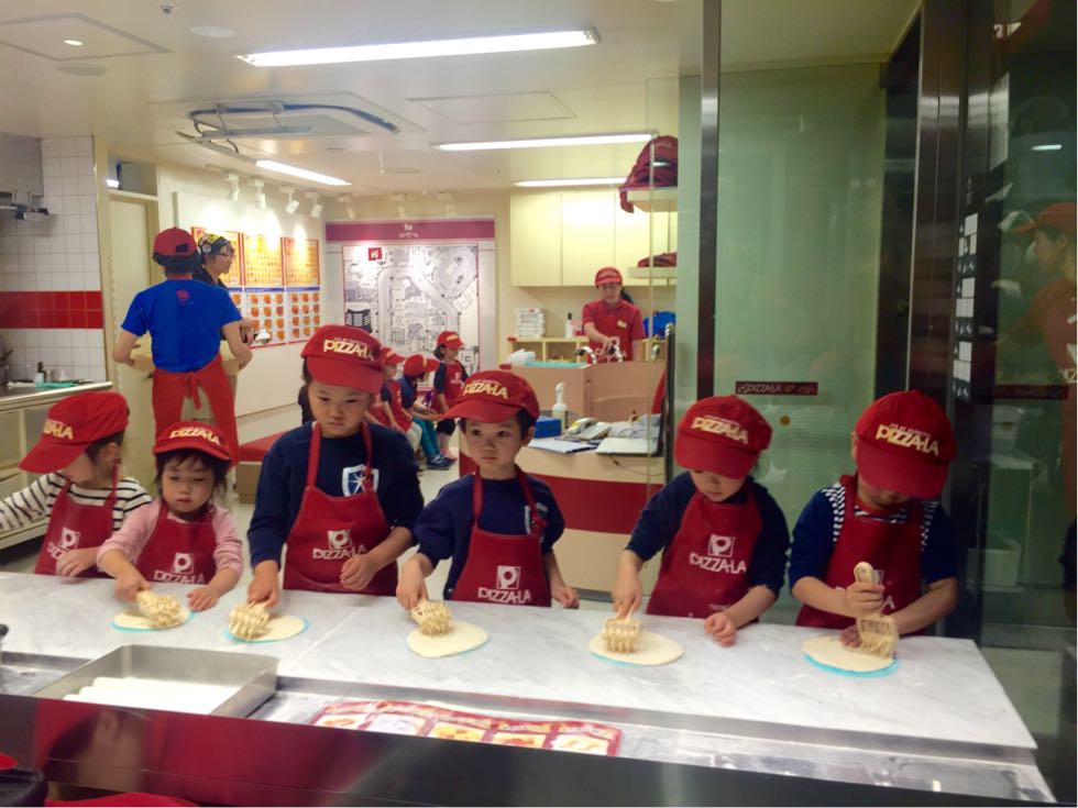 On Monday,we went to Kidzania in Toyosu. Kids got to role-play as adult at many jobs and activities using real-world tools and equipments. So the kids actively joined in the ABC Cooking Studio, Soup Factory,Pizza-La,Mitsubishi Motors,AutoBacs,Shiseido