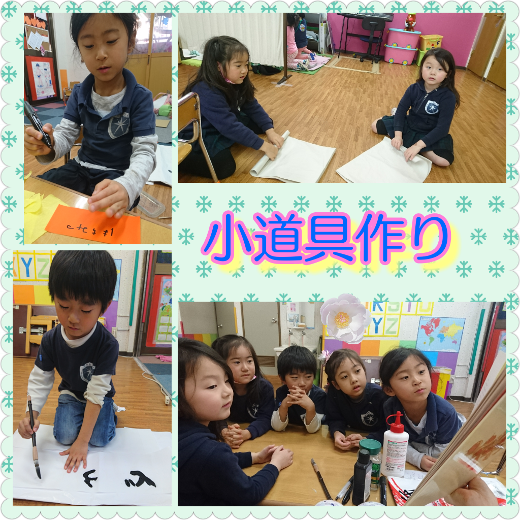 グループ分けをして、材料を渡しどうやって作るかお友だちと相談してもらいました。役割分担をしているグループもあり、立派だなと感心しました。