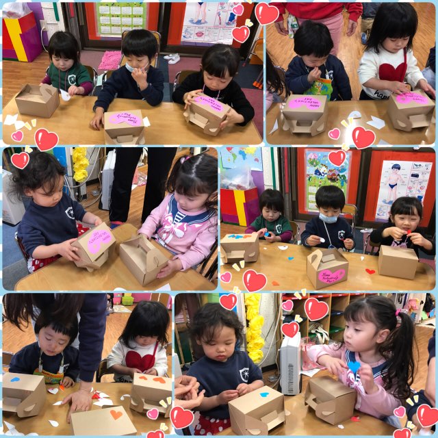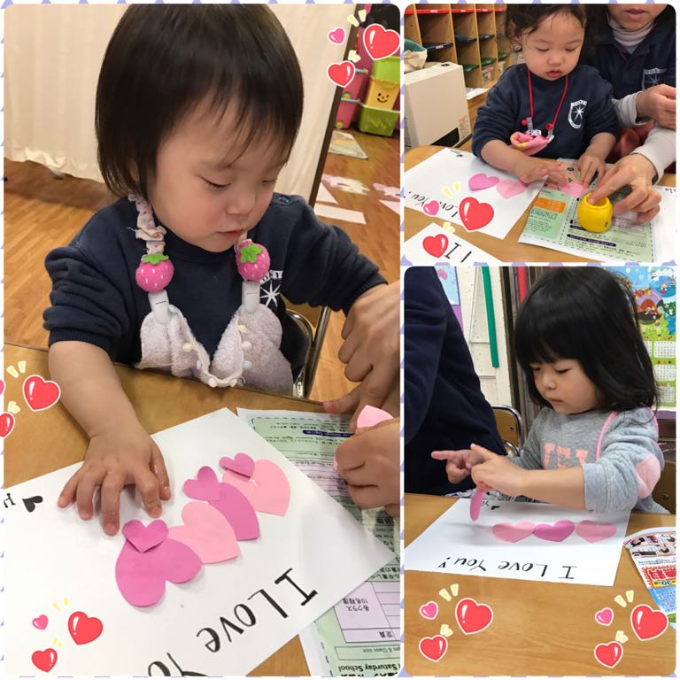 The children enjoyed making and preparing gifts for their parents on Valentines Day. They made cards,