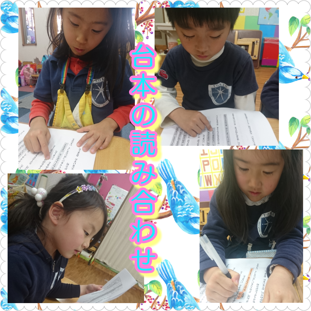 年長さんの劇の台本読みでは、登場人物の気持ちを考えながら読む練習をしました。