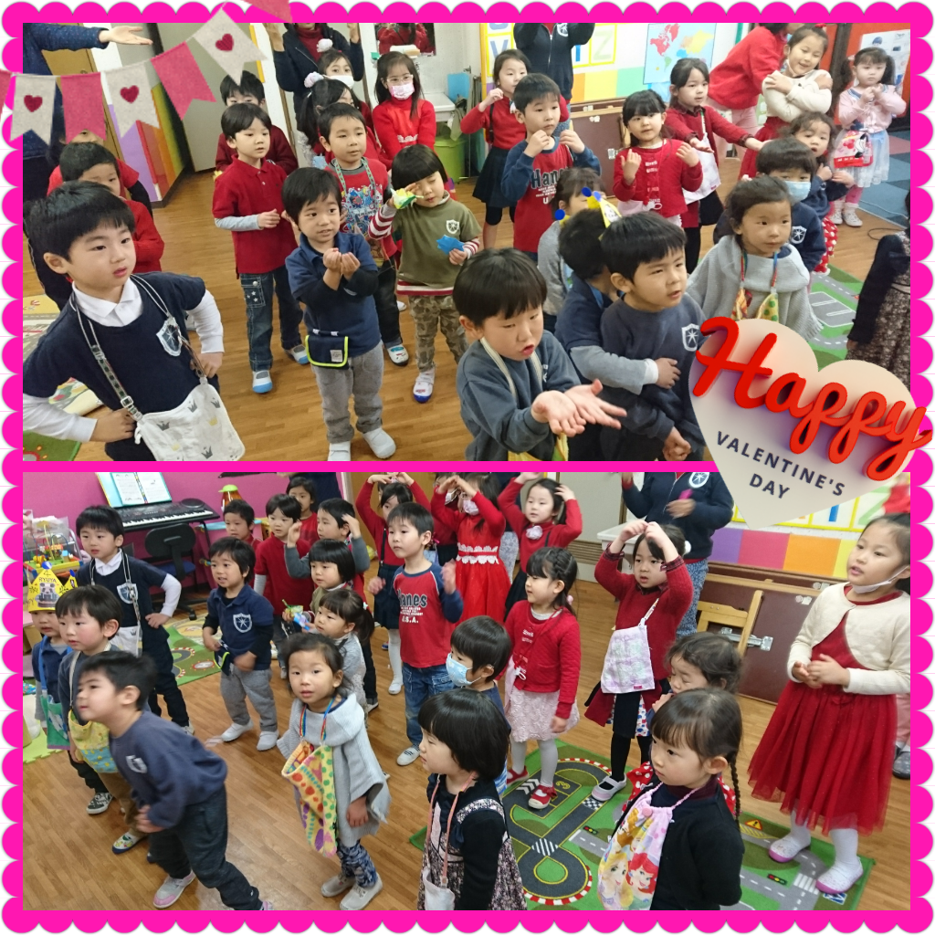 今朝は、赤い服を着て登園したGrape classとMelon classの子どもたち。朝、バレンタインの歌を歌いました♪そして、たくさんのチョコレートやお花をお友だちや先生にプレゼントしてくれる子も★Thank you very much!!