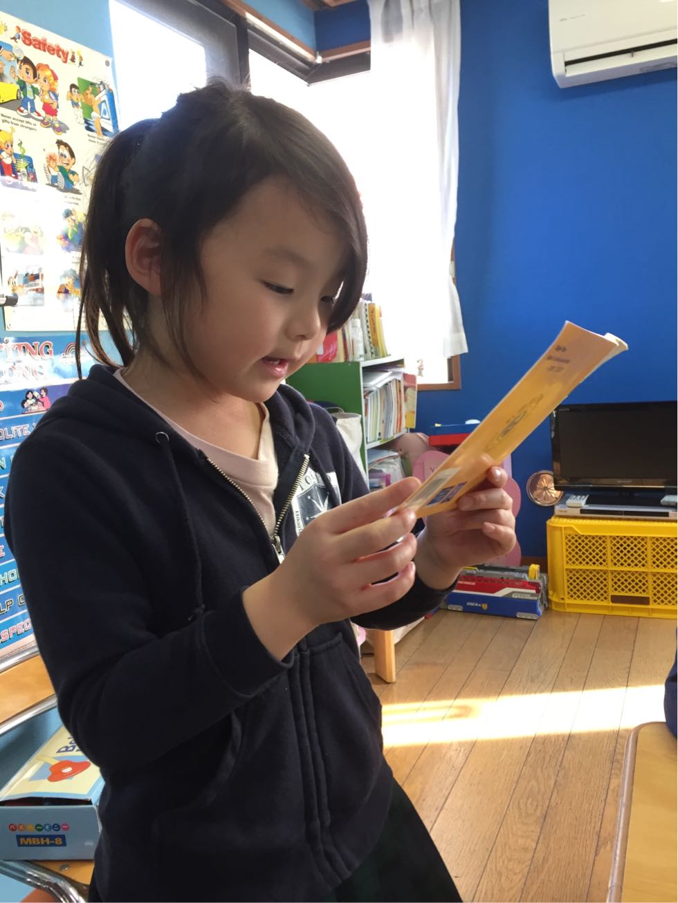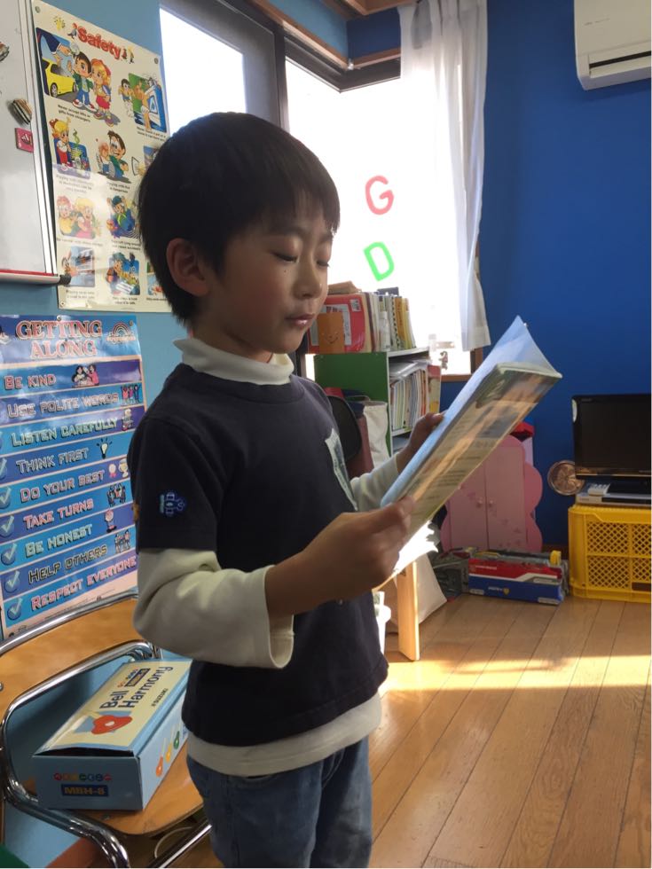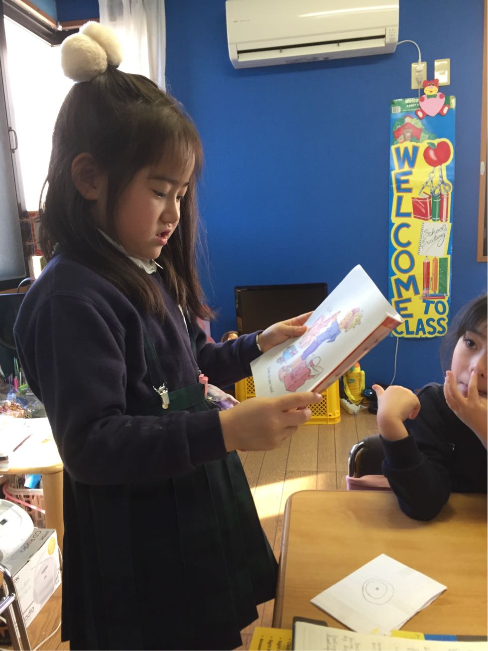3学期初日の今日は、Ms.Melanieから新年の始まりや、今年は酉年だというお話がありました。そして、一人ひとり今年の抱負について発表しました。なかなか難しい質問なので意味を取り違えて「I want to get OPEN CAR!」と答える子もいました…(笑)