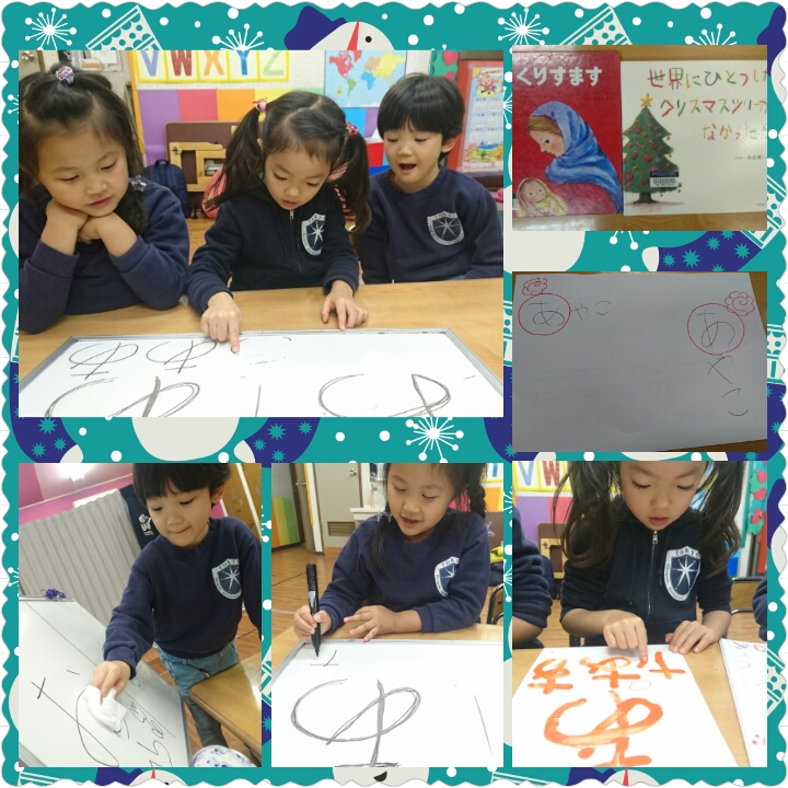 難しい「あ」でしたが、お友だちや先生の名前に「あ」があることに気付くと、やる気モード倍増‼