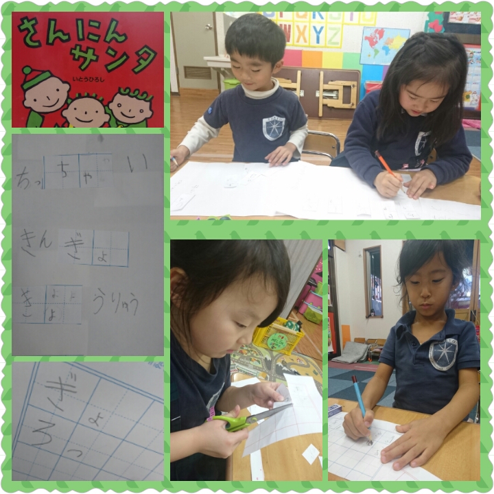 「きょうり」「しょくぱん」 など、ねじれの音。読むんだり、書いたりはもちろん、小文字をどこの位置に書くかも難しいですね。、何度もやることが大事なので、これからも頑張ろうね!!