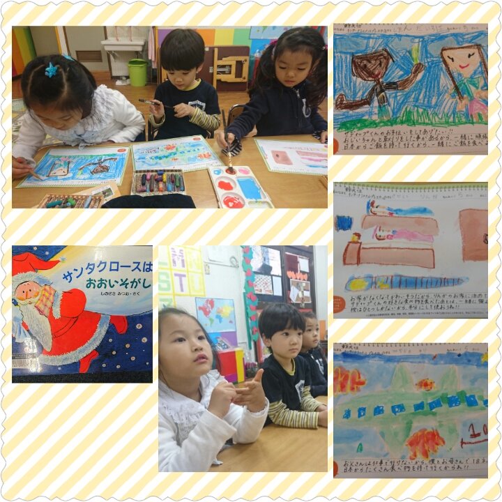 年中さんは、DVDの内容をよく理解してとても素敵な絵を描きあげてくれました。早いもので今回で4回目のコンクール、コンクールに参加する度子どもたちの絵にも感想にも変化があり、成長を感じることが出来ました。