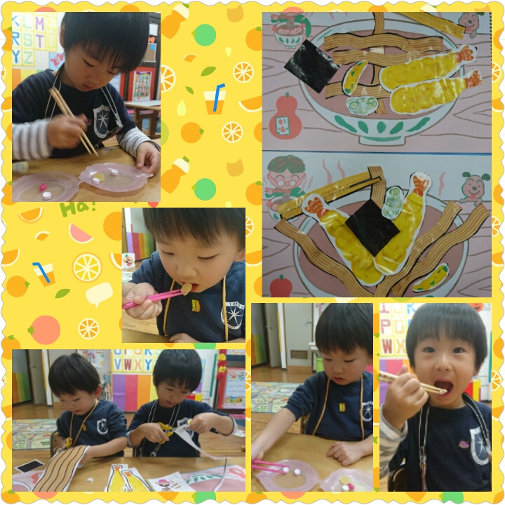 【りとる おいしいクラス】は、お菓子の空け移しをお箸で行い、最後は食べちゃう♪子どもたちに人気のクラスです。初めて参加した二人はお箸と葛藤しながら、美味しく、楽しく取り組みました!!来週もやろうね~