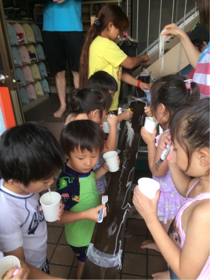 Most of the children stuffed themselves with somen. They also had nagashi chocolate.