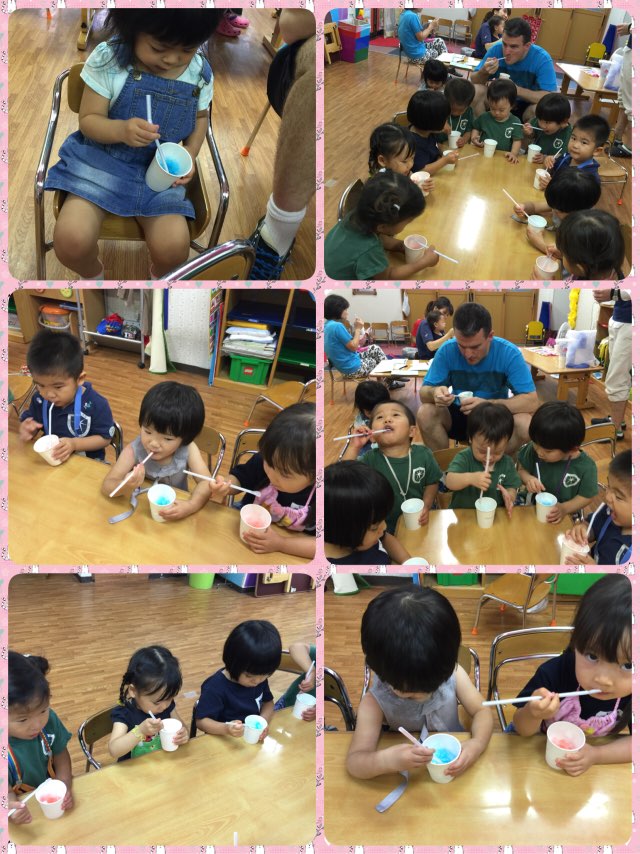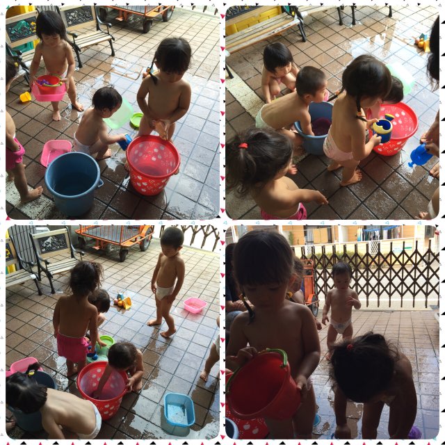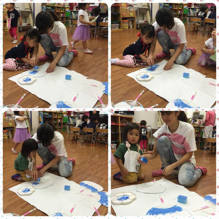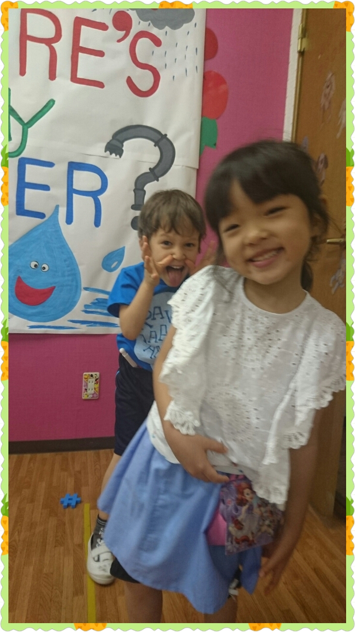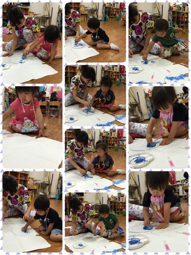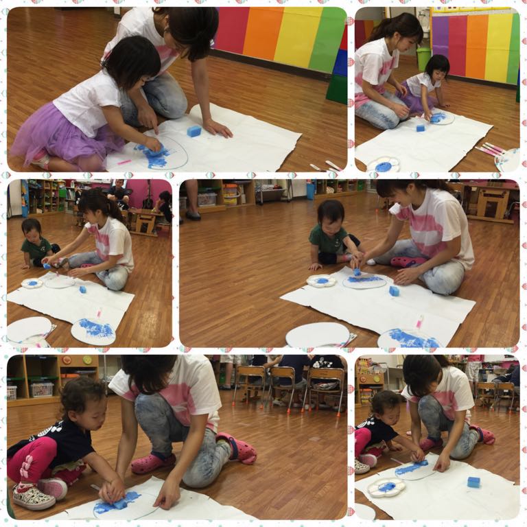 OrangeとSquareのステンシルを楽しんだあと、お水遊びを楽しんだり…