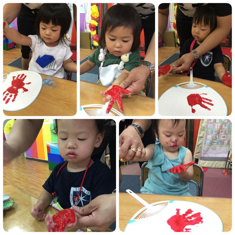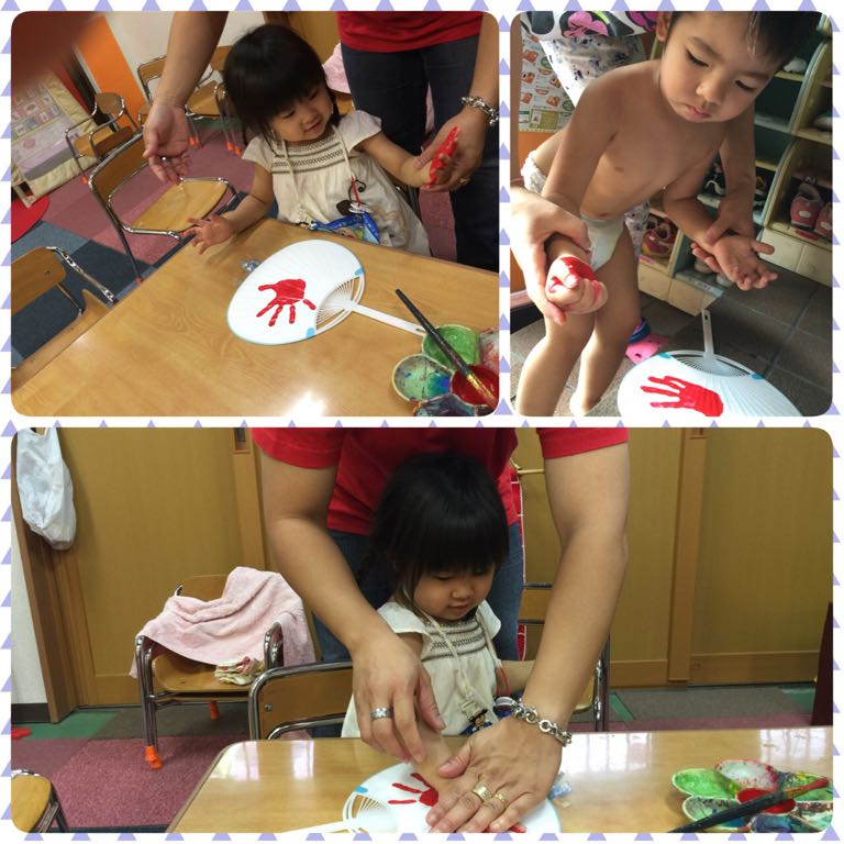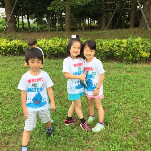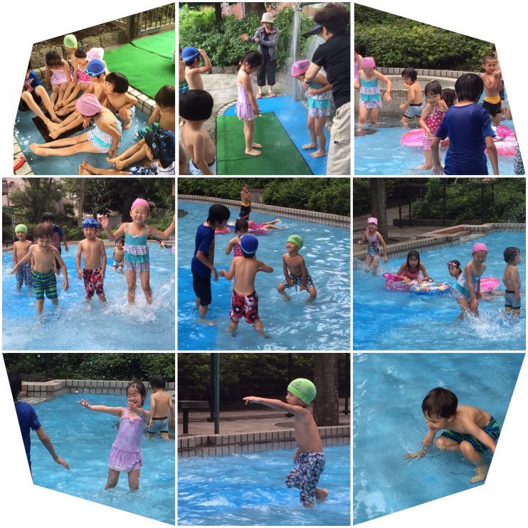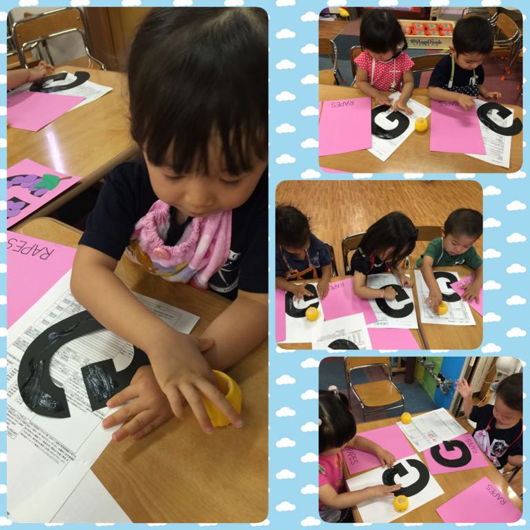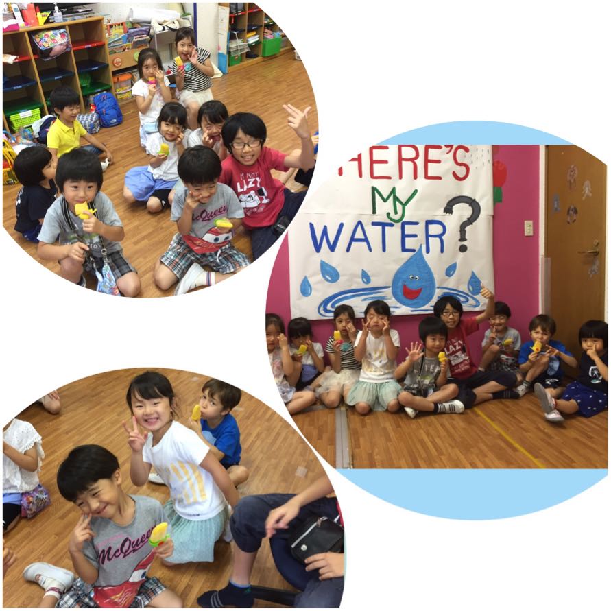 OrangeとSquareのステンシルを楽しんだあと、お水遊びを楽しんだり…