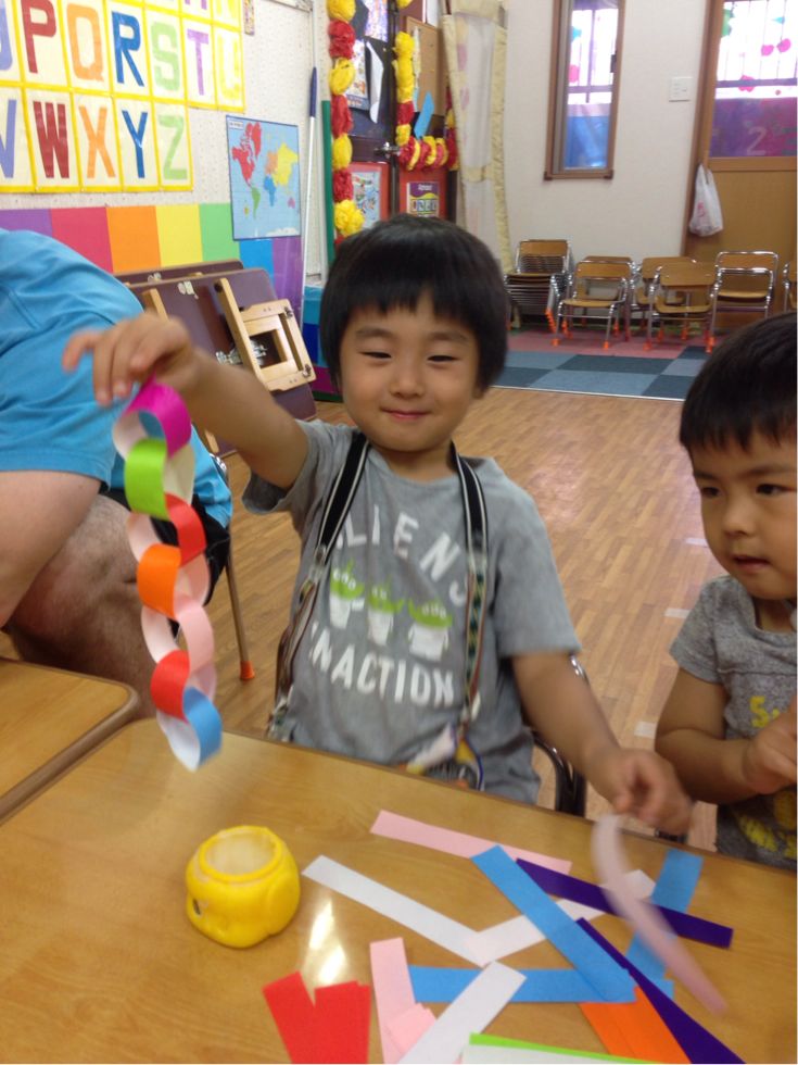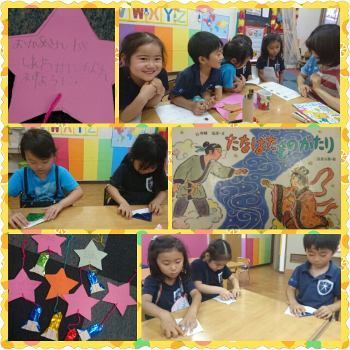 ロケットで星まで飛べば、織姫と彦星に会いに行けるね…と、ロケットと星の短冊を作った年長さん。「お母さんが幸せになれますように」と願ったお友だち。お母さんに渡した瞬間願いは叶っていたね♪私のアバターが欲しい、という私の願いも叶ったのです!!Ms.Ayakoに丸つけをさせて?して??もらっちゃいました(笑)