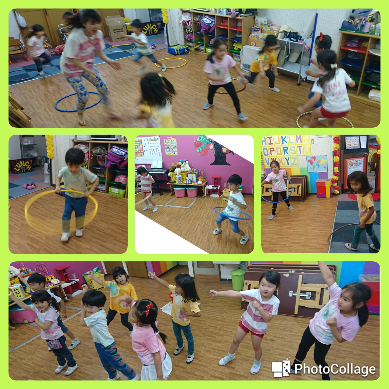 そのあとは、フラフープ。久しぶりのフラフープに、大喜び!!