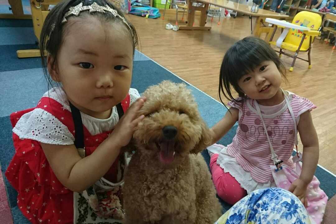 頑張ったあとは、とっても楽しい布絵本を見て大興奮の三人でした。