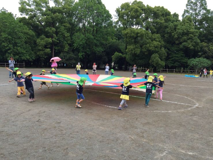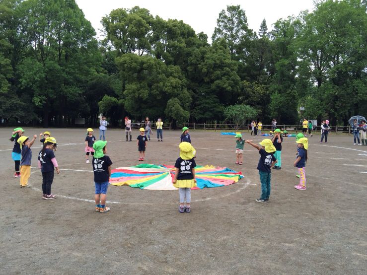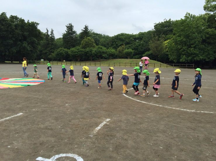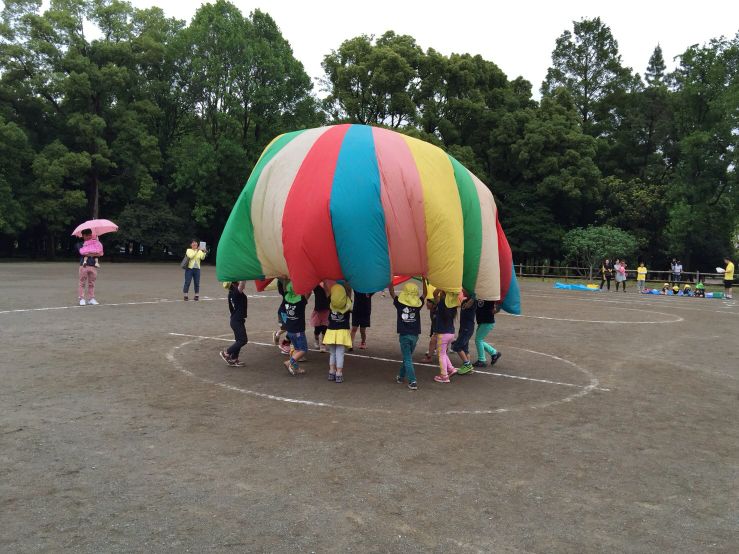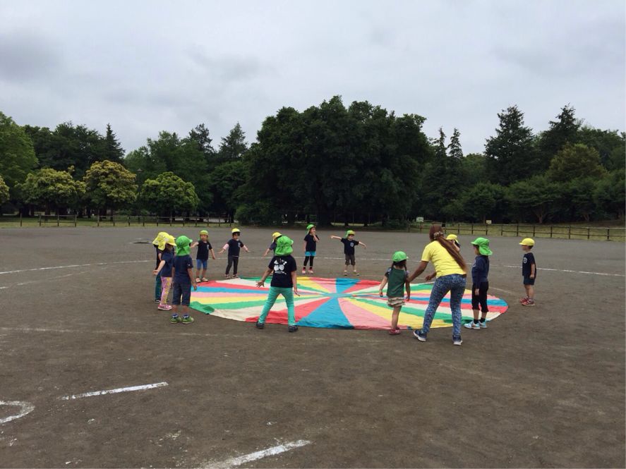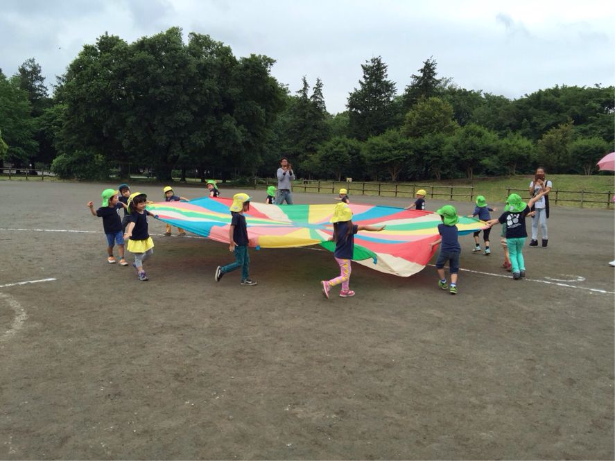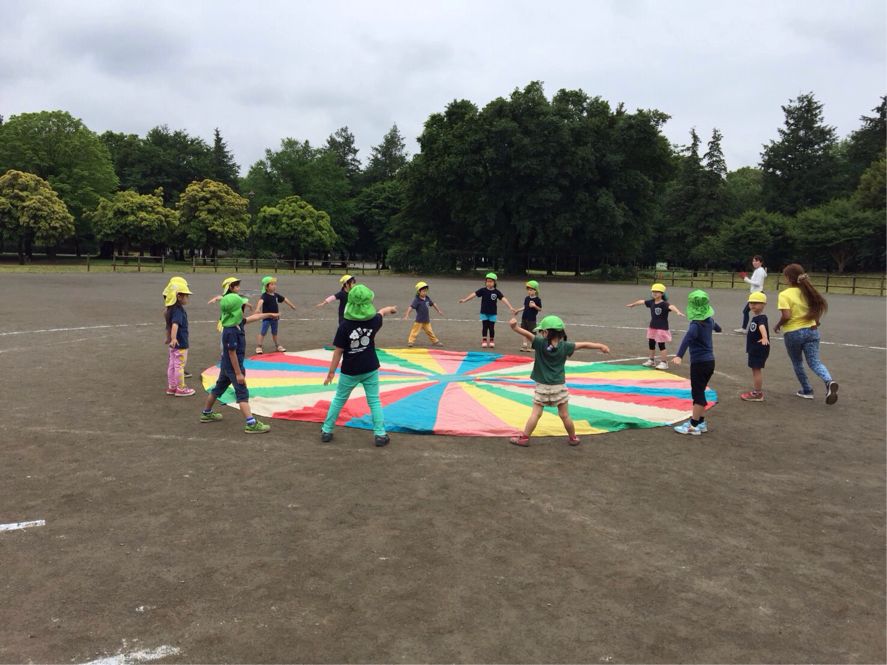 パラバルーンは、今年初めて先生のヘルプなしで子どもたちだけで行いました。とっても上手でしたよ!!