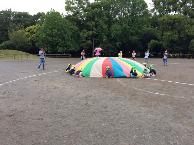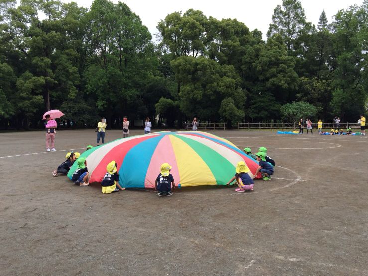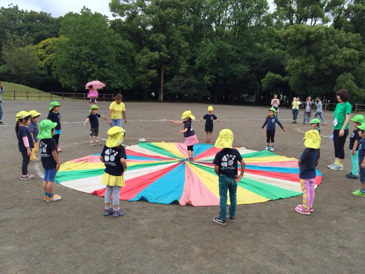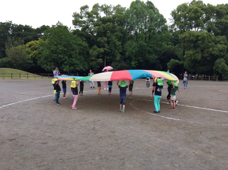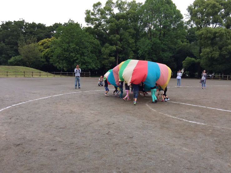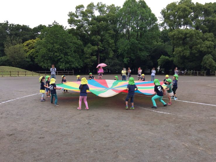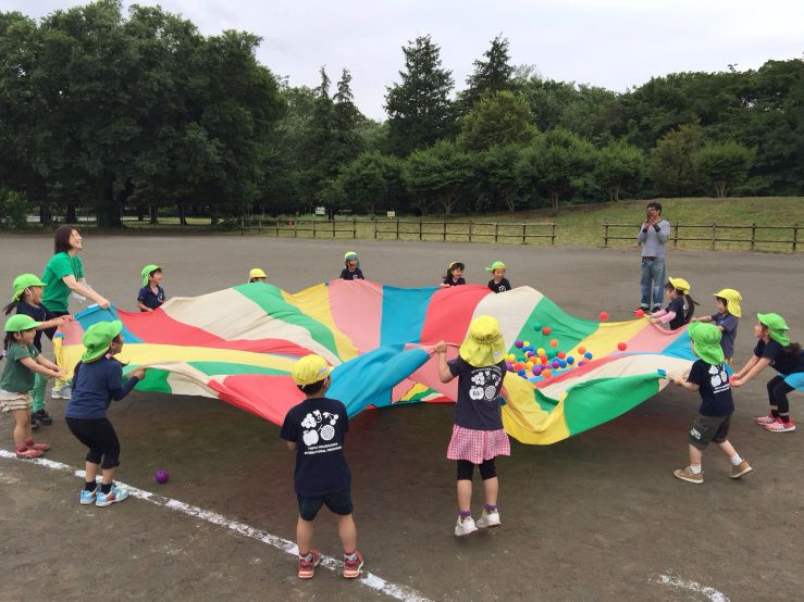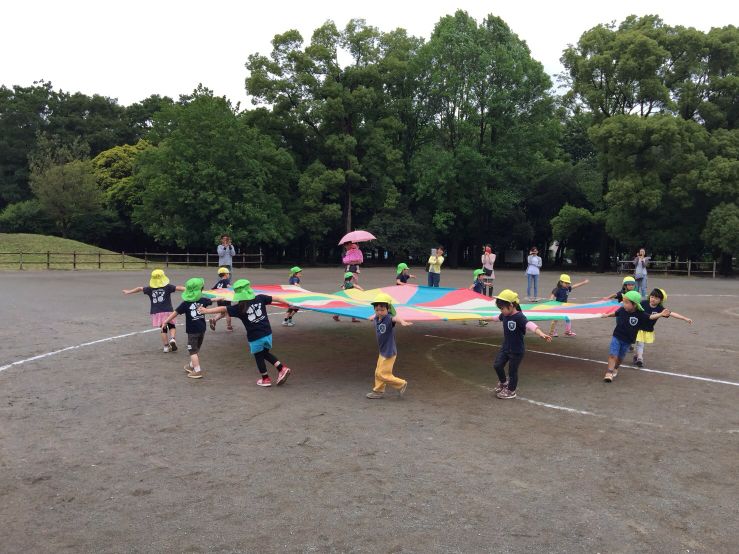 パラバルーンは、今年初めて先生のヘルプなしで子どもたちだけで行いました。とっても上手でしたよ!!