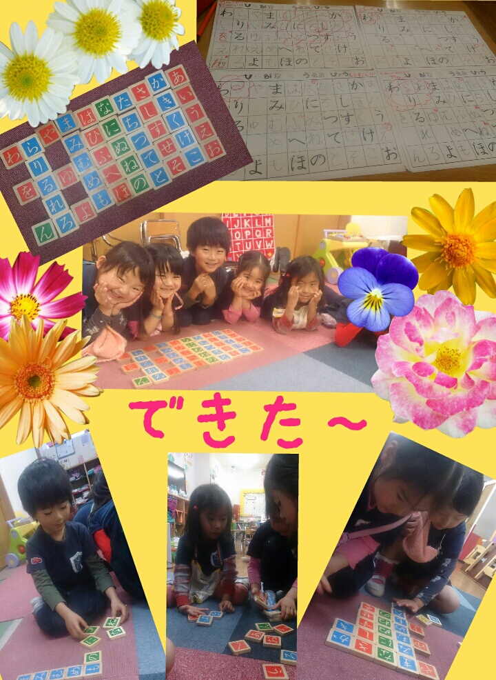 平仮名50音と濁音、半濁音の復習をしました。一人一行ずつ平仮名を並べて、みんなで平仮名パズルに挑戦★