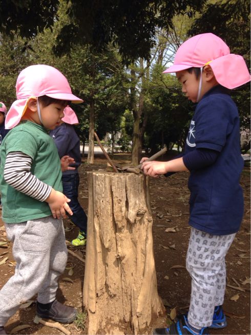 お部屋に戻り“花さかじいさん”の紙芝居を読み終えたあと「みんなは、いい人になりたい?悪い人になりたい?」と尋ねると、花さかじいさんの飼っていた「犬になりたい」と答えたRちゃん。「なんで犬になりたいの?」と尋ねると、「みほ先生は、犬が大好きだから~」と甘えながら答える姿を見て【今年度も頑張ろう!!!】と思いました♪♪笑