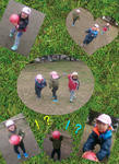 外でバランスゲーム、ダッシュ、ドッチボール、サッカーを楽しんだみんな。