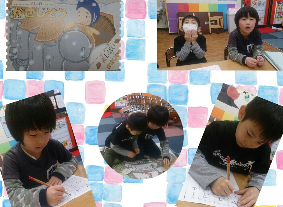 雪が降っていたので【かさじぞう】の紙芝居を読みました。