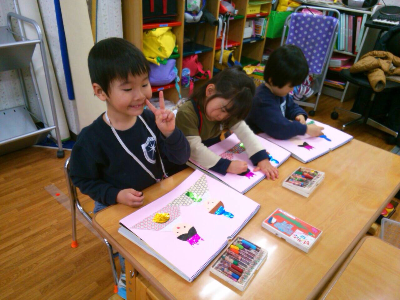 切り紙の製作をしたあとは、お友だちの名前を使って平仮名のお勉強★
