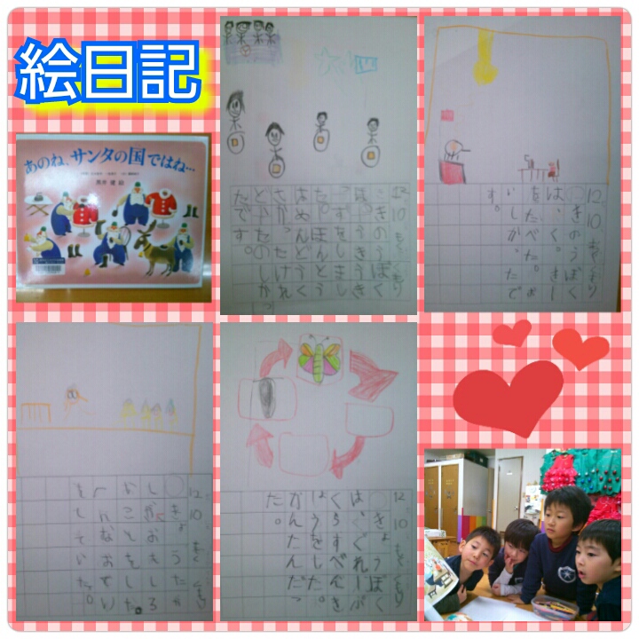 冬休みの宿題は絵日記なので、この日は練習をしました。