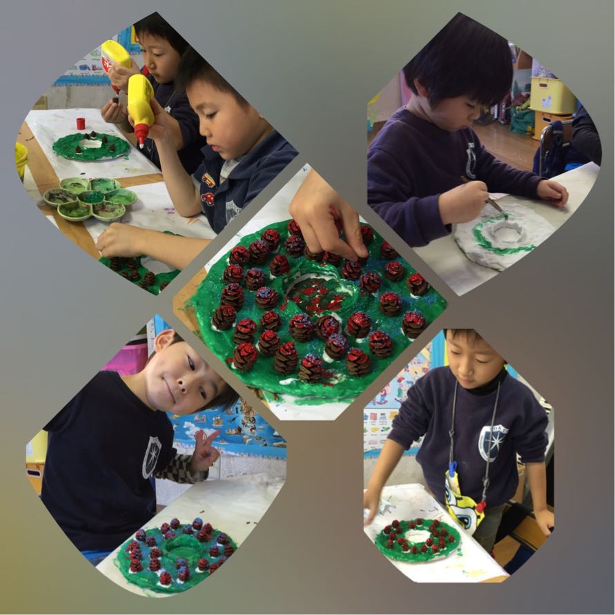 We can already feel that Christmas is coming soon. In the class we started making craft related to Christmas. The children made a Christmas candle holder and we decorated it with the dried flowers from the tree that we picked up at the park.