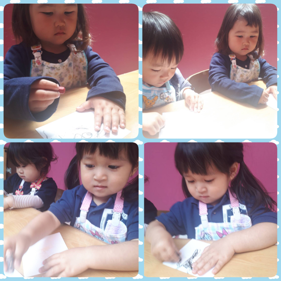 年少さんは、プリント。運動会の疲れと初めてのプリントで少しお疲れモードでした。ですが、お喋りが大好きなみんなはこの日も一時間口を閉ざすことはありません(笑)花丸をもらうと、やる気倍増♪