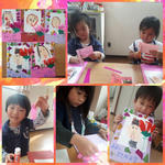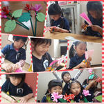 年長さんは、カーネーション作り。葉っぱにはお手伝い券付き。お母さんがどんなお手伝いを必要としてるか、一人ひとりよく考えて書いていました。