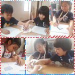 半濁音のお勉強をした後、濁音と半濁音の復習をした年長さん。早く終わった人がもらえる“スペシャル問題”をgetすべく、みんなせっせと問題を解いてくれます。教えがいのある年長さんです。