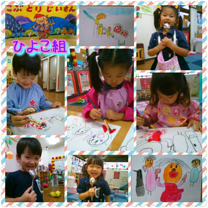 ひよこ組は、絵と絵の具にゆっくり時間をかけたので、素晴らしい作品を作ったあと紙芝居を楽しみました。