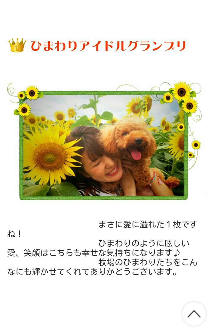 成田ゆめ牧場で行われていた【ひまわりアイドルを探せ】という企画に投稿した写真が、なんと……グランプリを受賞しましたp(^^)q