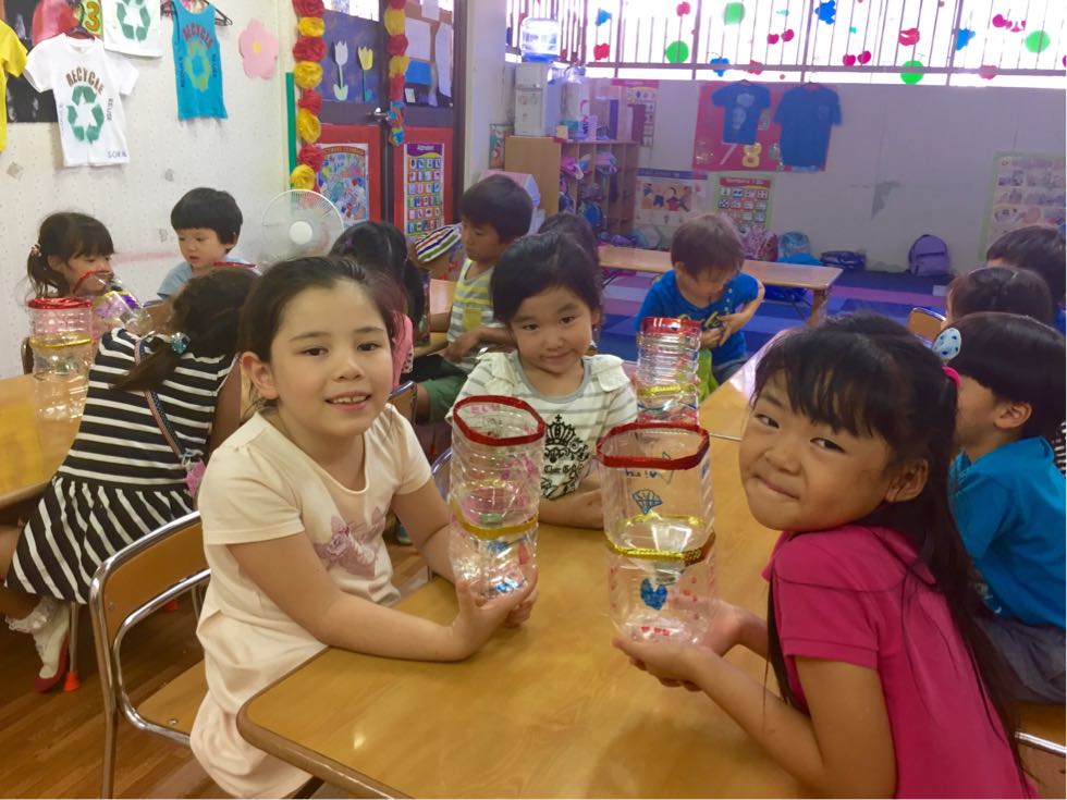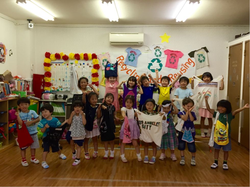 The theme of our summer school is Recycle. In the morning , we introduced each other and sang songs on recycle.