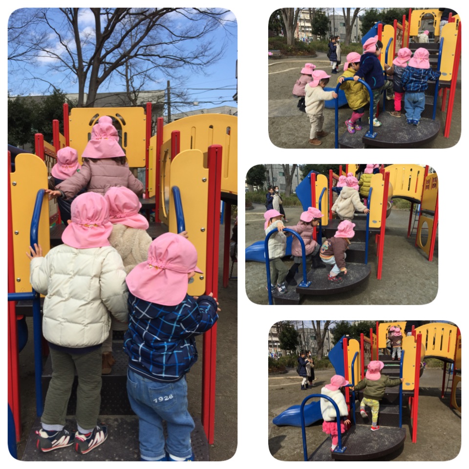 This week,we had a good weather,not too cold,which means Spring is just around the corner,so we enjoyed ourselves at the park. And the kids had a great time during park day,because we went to a new park. They all had fun sliding down the slides together...