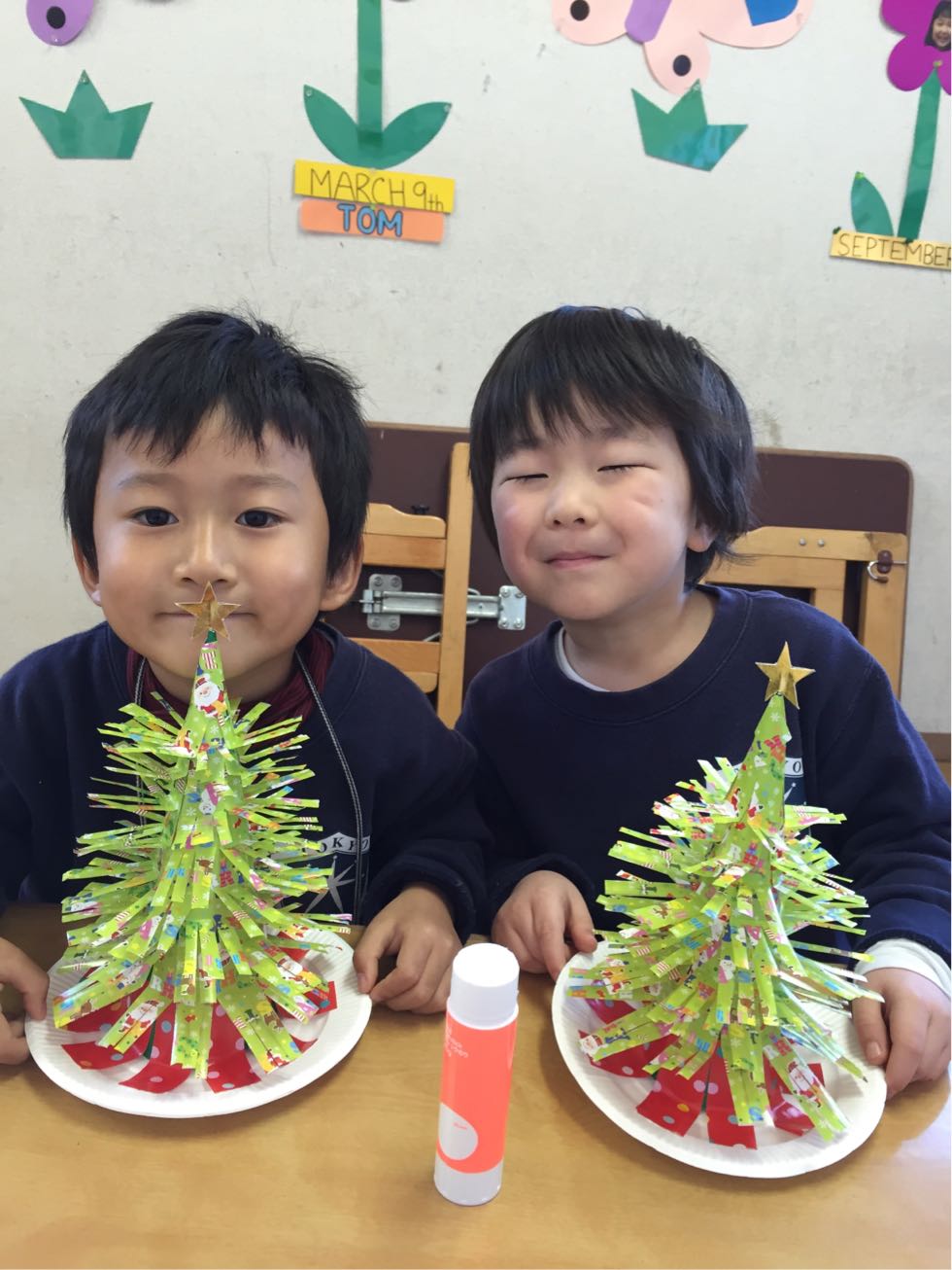 We also made our Christmas tree out of hard construction papers and green wrapping papers.