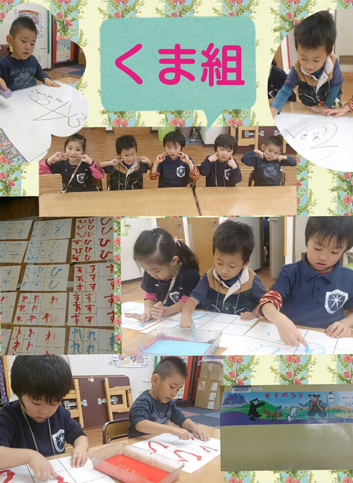 平仮名『す、れ、ひ』を丁寧に、かつ素早くかけたくま組さん。どうでしょう?これらの素晴らしい平仮名!!最近、みんなの成長を近くで感じることができています。