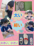 教具はありませんが、公園で太い木と細い木を拾って実践するなど、目的に合うものを子どもに提供しています。