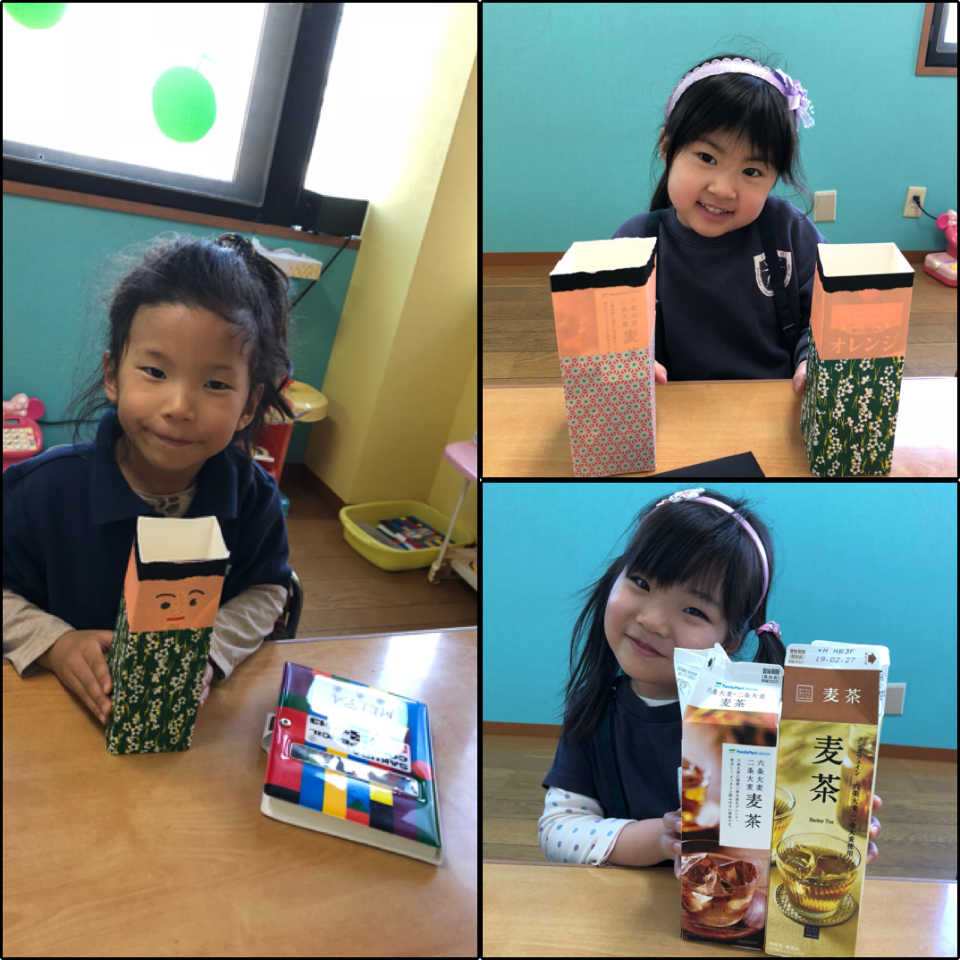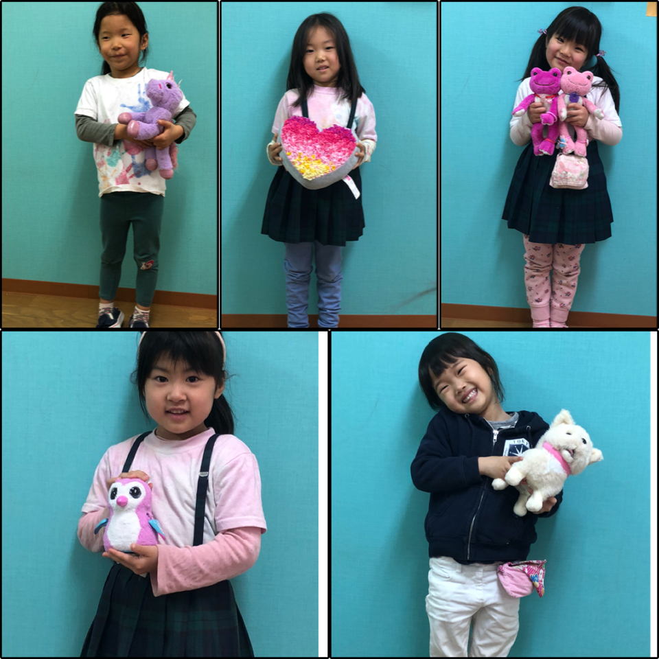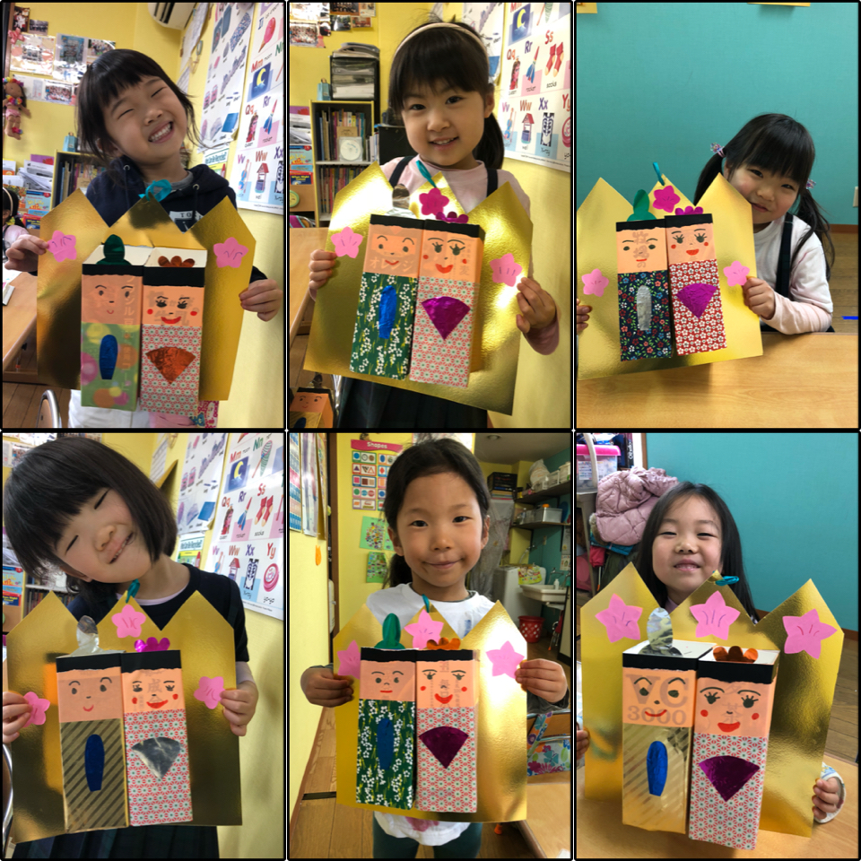 Hinamatsuri or the doll festival in Japan is celebrated on the March 3rd for the female children and pray for their health and happiness. So in the Melon Class, we made Ohinasama and Odairisama out of the milk cartons. We also had “Show and Tell” and kids introduced their favorite toys.